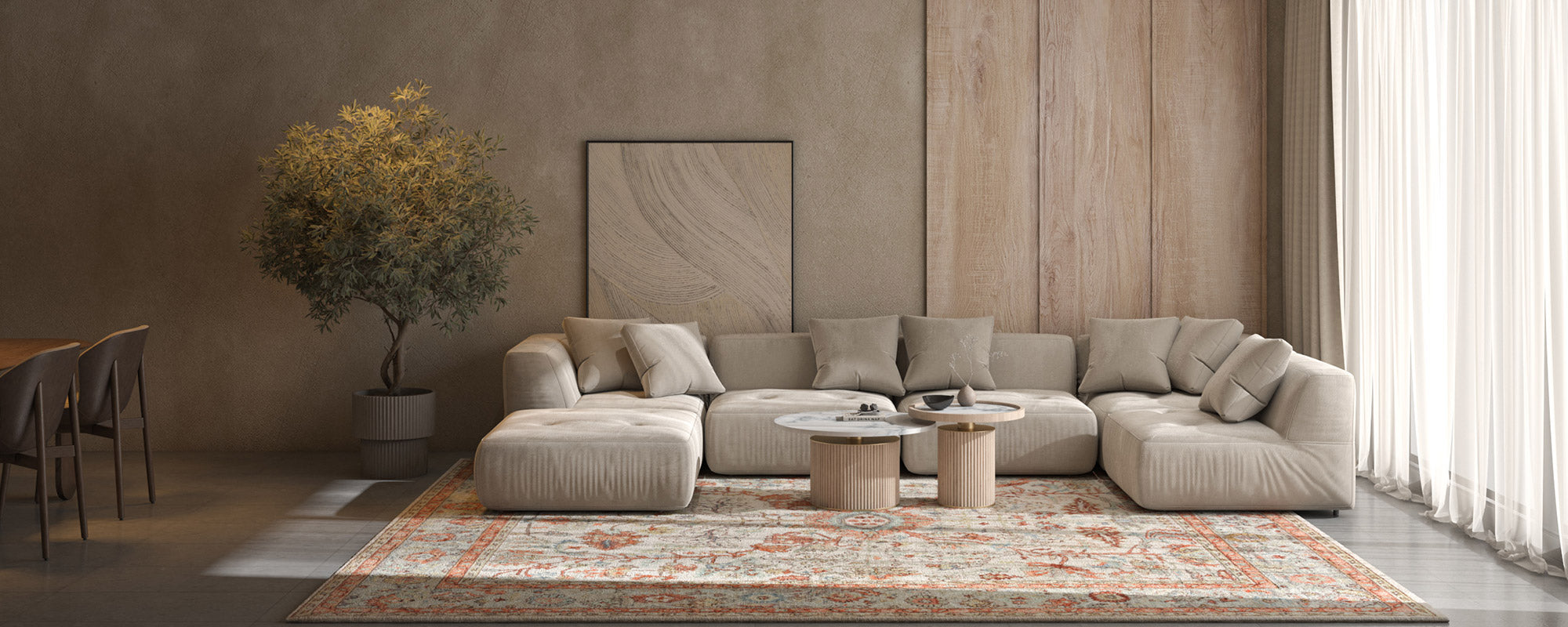 The right living room rug size will depend on the size of your space, but typically, large pieces – like 12’x15’, 9’x12’, and 8’x10’ options – are great for living rooms.